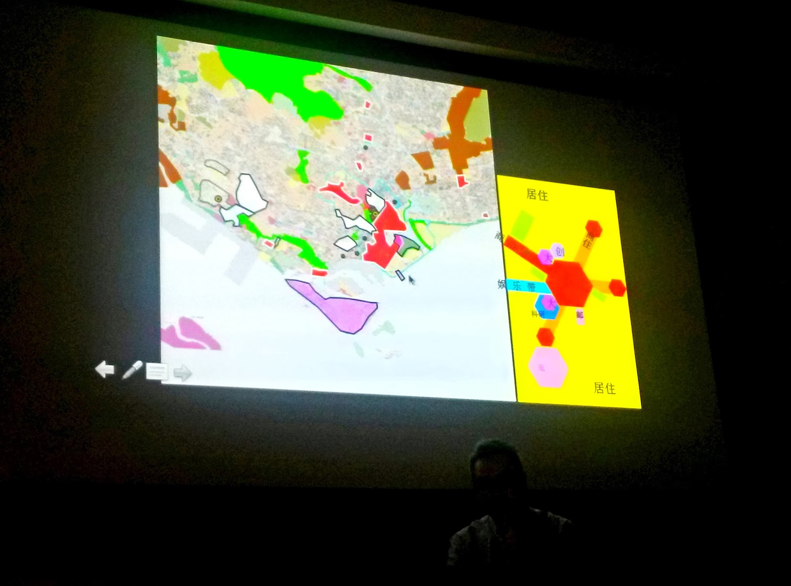 Jay started off with an introduction of what a planner does ("make assumptions"), which is based on research and analysis. Research involves studying land use, population, et cetera, which is then compiled into a 'master data' spreadsheet (which is also filed away for future reference). Another big part of their project research is case studies, whereby similar spaces around the world is referenced, and used to 'inspire' (in our terms; I'm pretty sure they have a proper term for this) the project. These case studies can be very broad (land use in a CBD), or more specific (the location of cruise terminals) depending on the project.